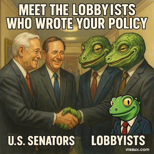 These lobbyists don’t just influence state regulators, they write the rules. State legislatures are the battleground, and the lobbyists show up armed with pre-drafted bills, watered-down consumer protections, and clever loopholes designed to tilt the playing field. Even the templates insurers use to build policies are often shaped by these behind-the-scenes deals. And while some tax-favored policies originate in D.C., it’s the statehouses where most of the power plays happen.